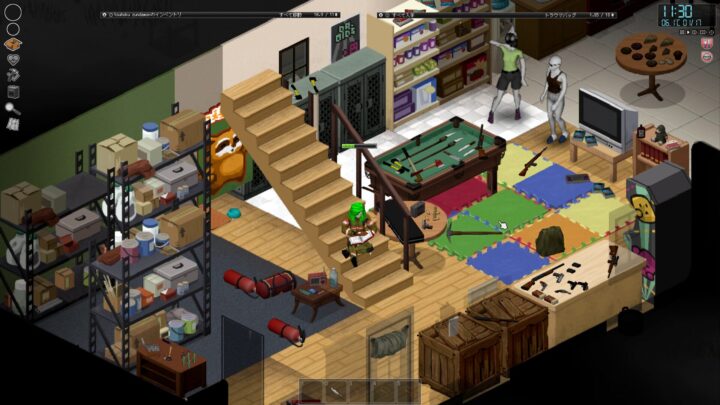 難易度黙示録でも一応序盤はゾンビが少ない、通常時?に比べればずっと少ないという救済措置が一応あるんだけどそれでもゾンボイドが始まった直後の絶望感は凄まじい。スタート地点で上手く武器が確保出来なければ素手で外に出ることになる。ゾンボイドには車や様々なクラフトアイテムが出てくるがどれもスキルが必要だったり材料が必要だったりツールが必要だったりとにかく中間素材や何やらが大量に必要になってくる、カジュアルゲームの対極にあるゲームがゾンボイド。食料や水の概念ももちろんこのゲームにはある、純粋な空腹以外にも食料が足りてないと太るみたいな設定もあるらしい。