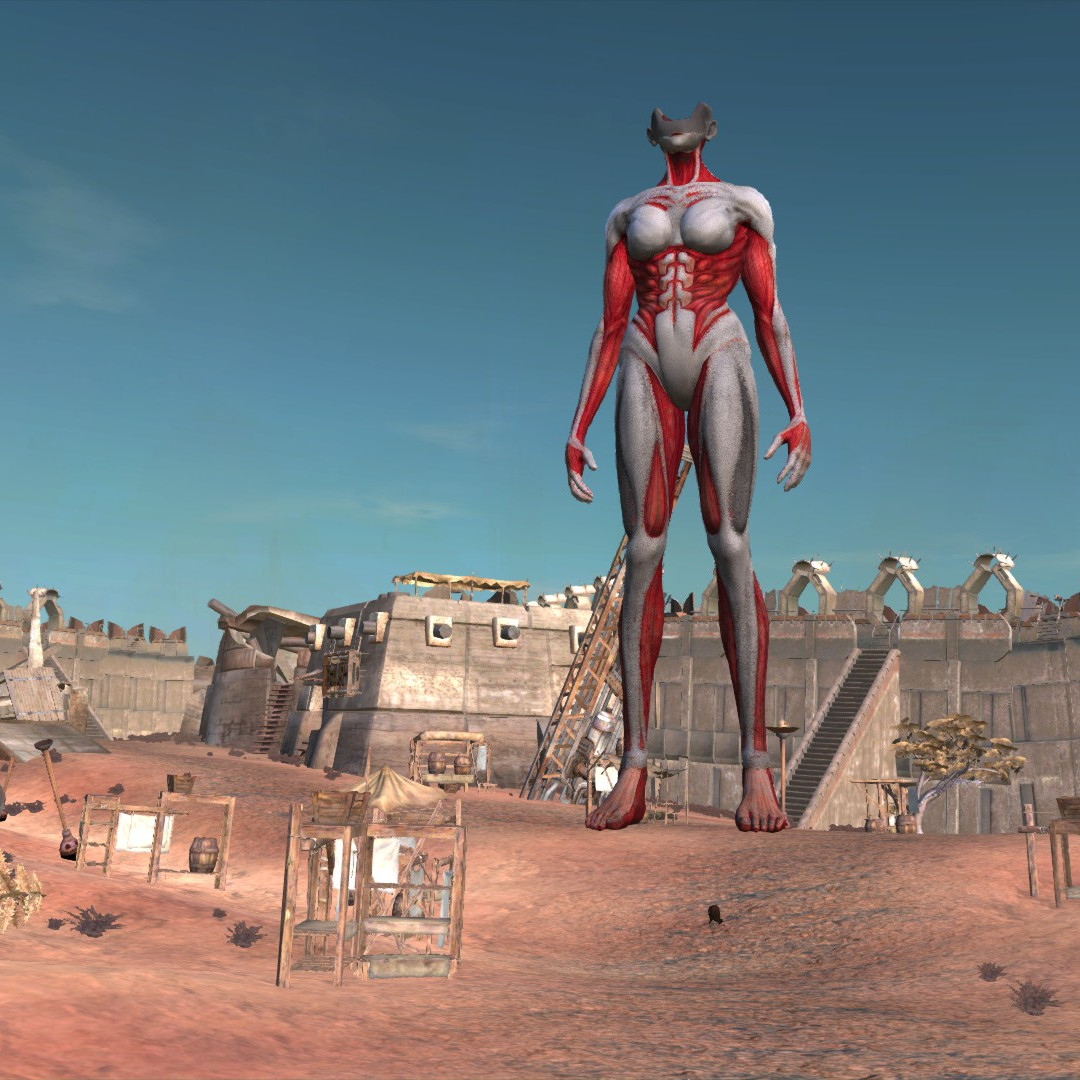 めっちゃデカい女性型の?巨人をを追加するMOD、仲間になってくれる…?つかどう見ても女型の巨人…。