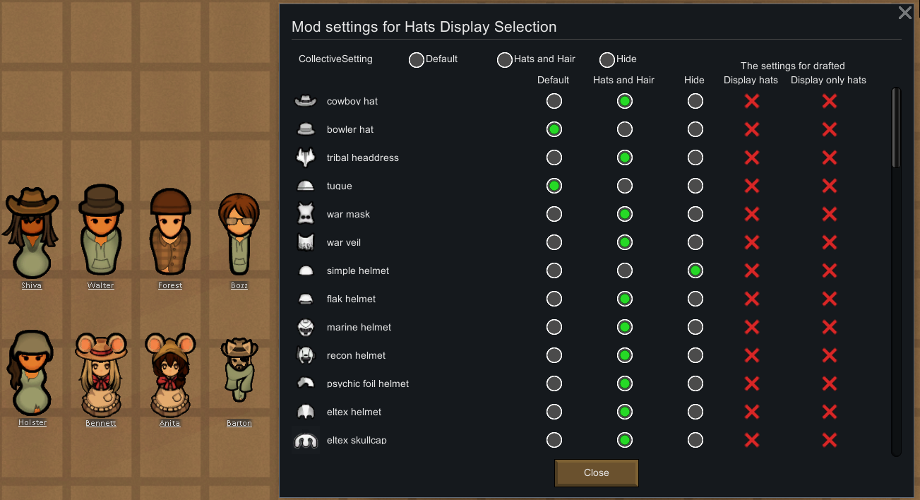 - Hats Display Selection